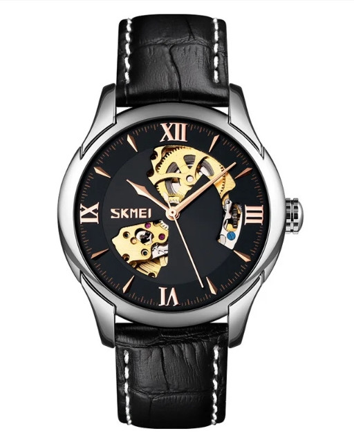 Механічний годинник скелетони Skmei 9223- це годинник з відкритим механізмом в якому рухомі частини повністю або частково проглядаються через спеціальне віконце в циферблаті або на задній кришці. Працюючий механізм, від якого Вас відокремлює лише захисне скло, заворожує свідомість і не дає відірвати очей. Прозора задня кришка відкриває секрет роботи маятника автопідзаводу.