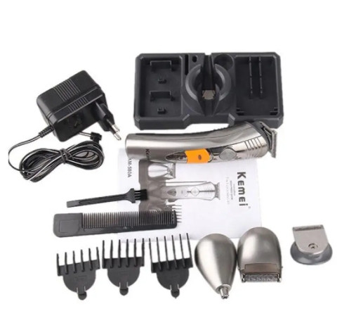 Акумуляторна бездротова ручна машинка для стрижки волосся 7 в 1 тример Kemei Km-580 безшумна, з низьким рівнем вібрації.
